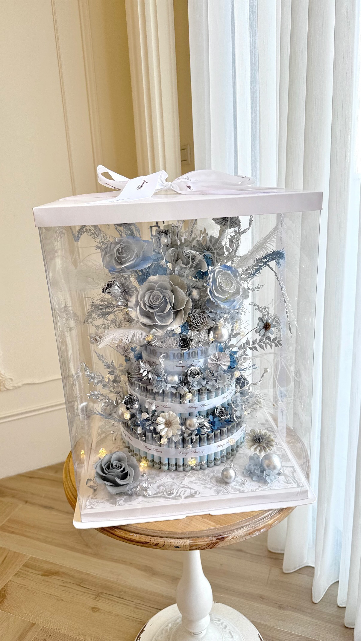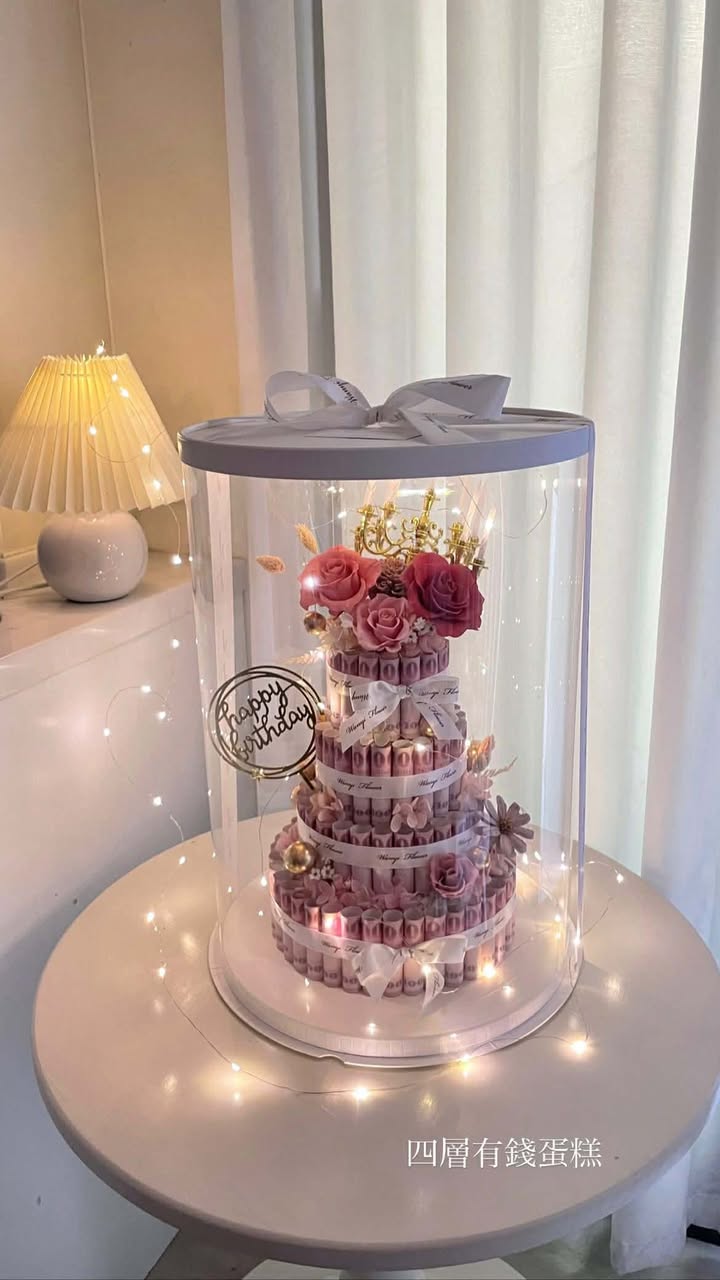 🌸 4層永生花鈔票蛋糕(含禮盒包裝)