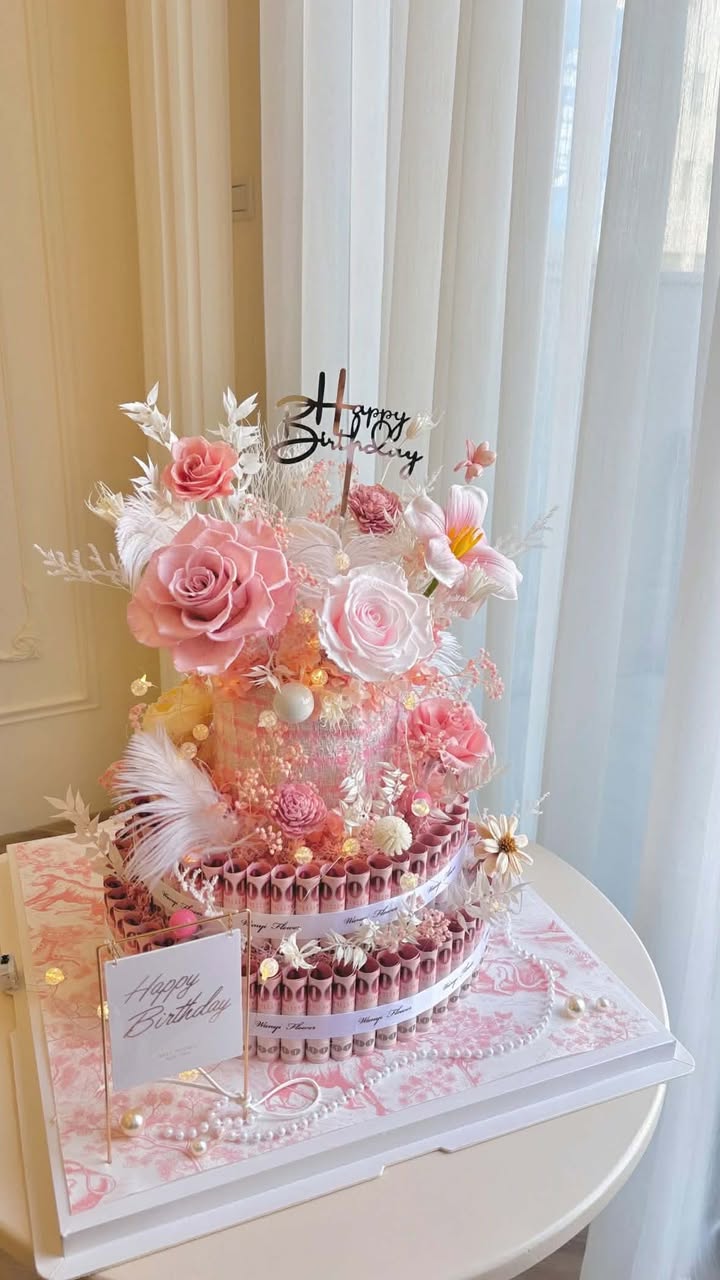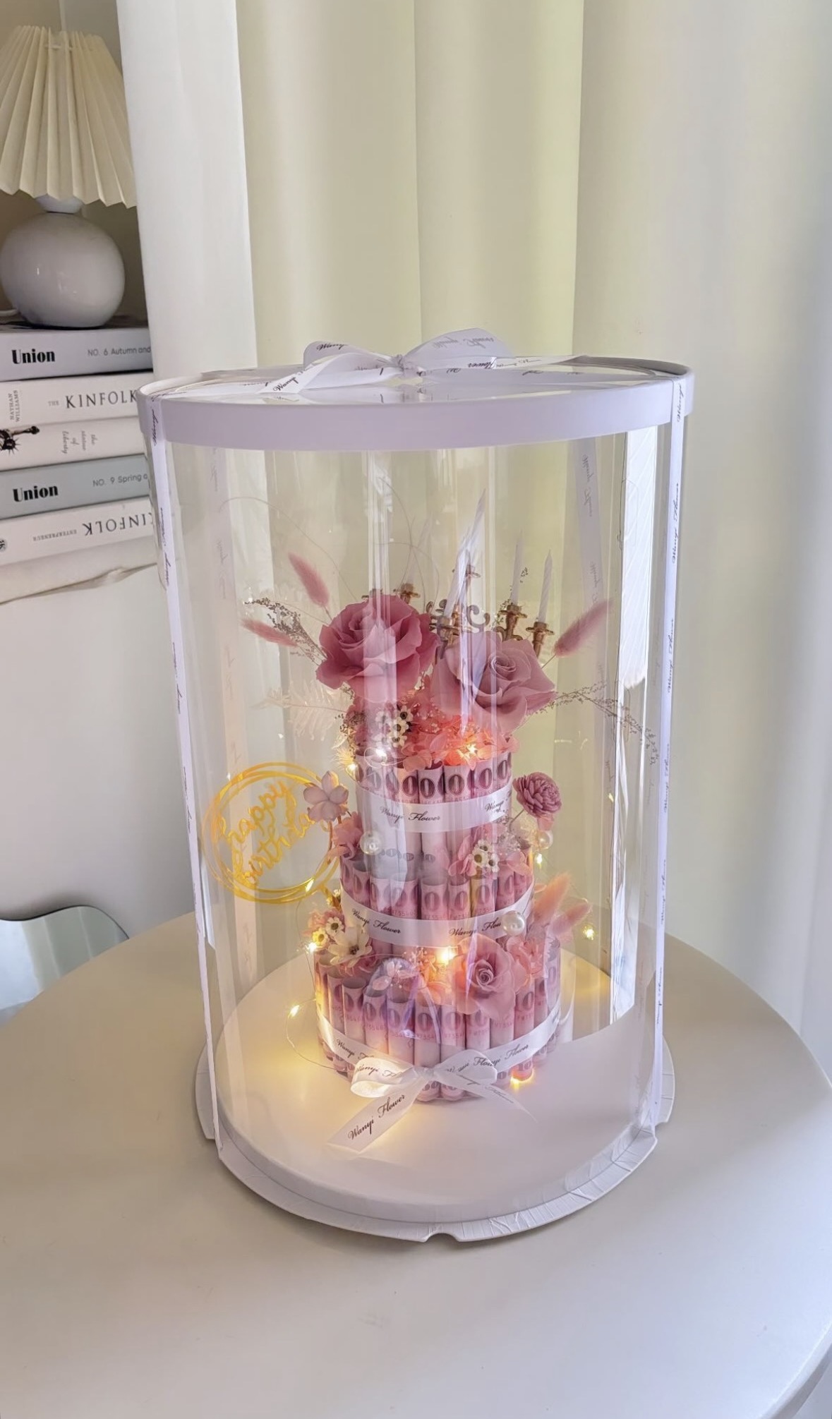 🌸 4層永生花鈔票蛋糕(含禮盒包裝)