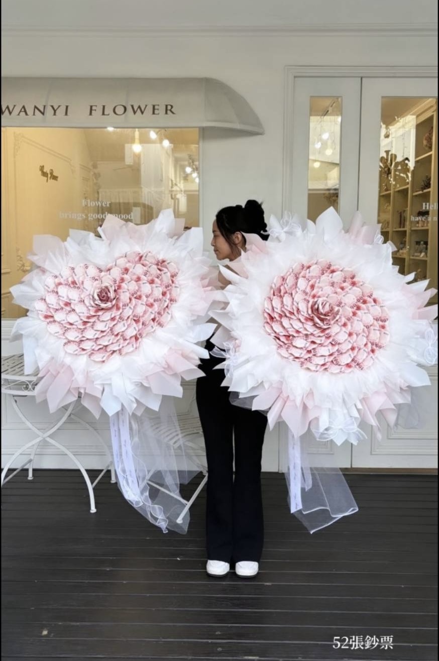 以精緻多層次包裝手法打造的華麗鈔票花束,