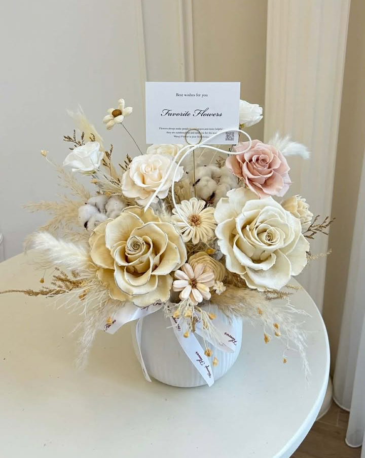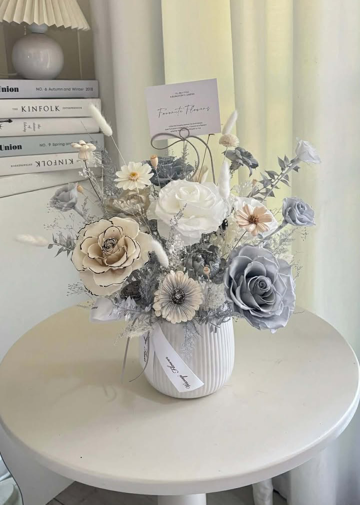 安置於質感花器中,讓整體更顯清新典雅,不論擺放在客廳、玄關或工作室,皆能提升空間溫柔氣質。