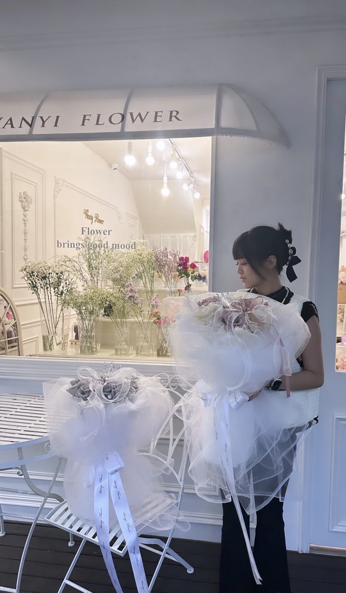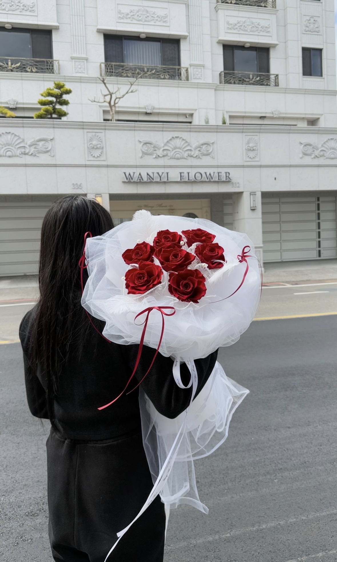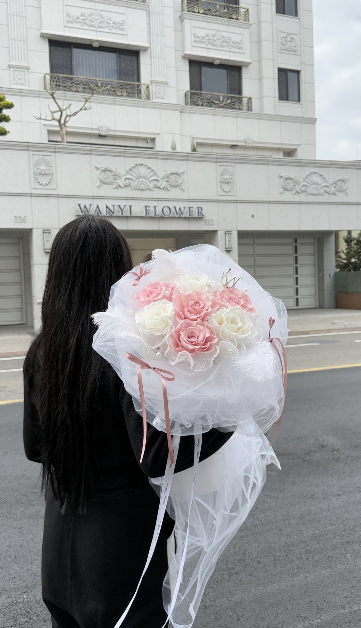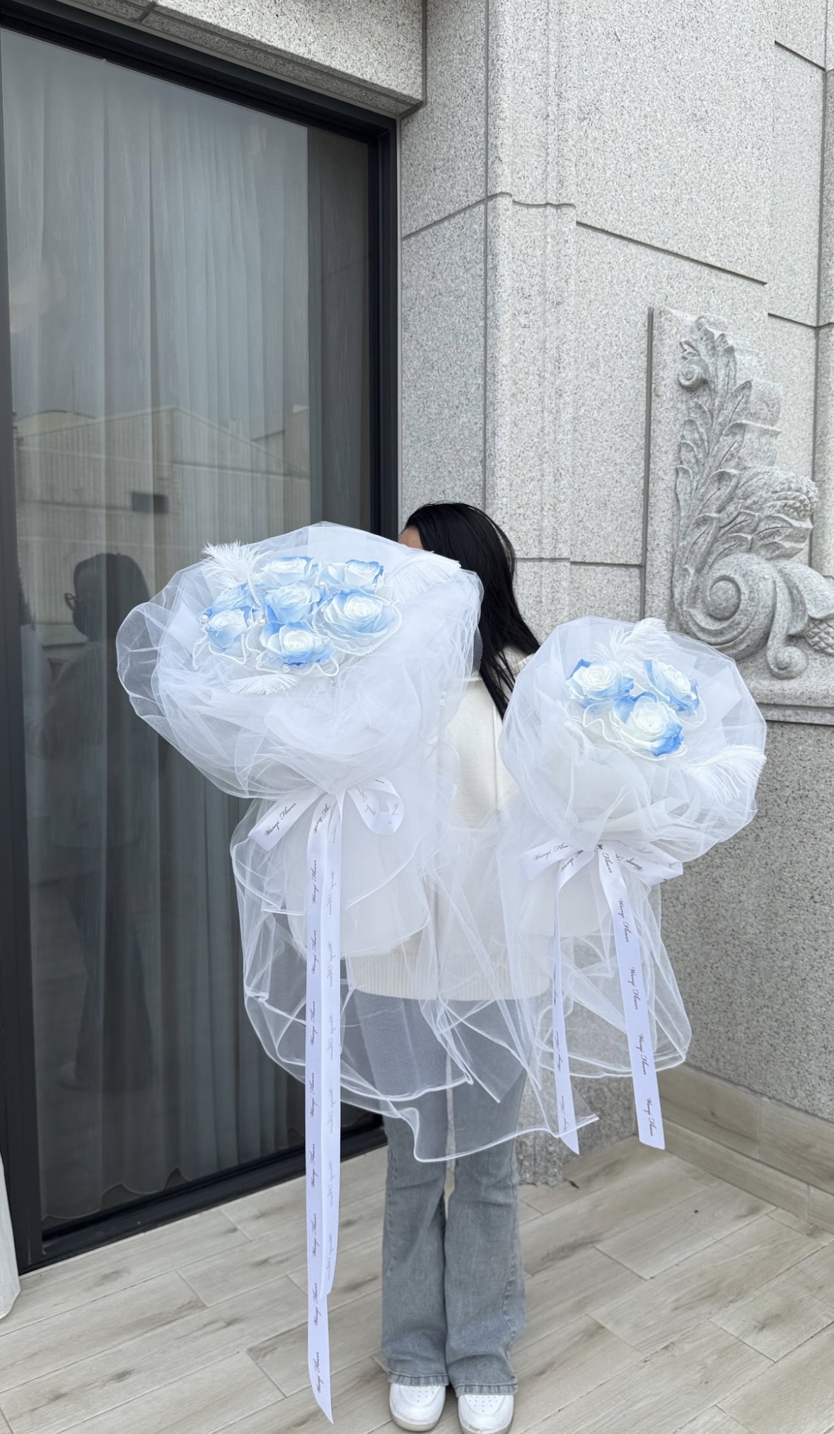 以輕柔的網紗打造層次感十足的外型,搭配頂級厄瓜多玫瑰,呈現超高級的韓系氛圍感。