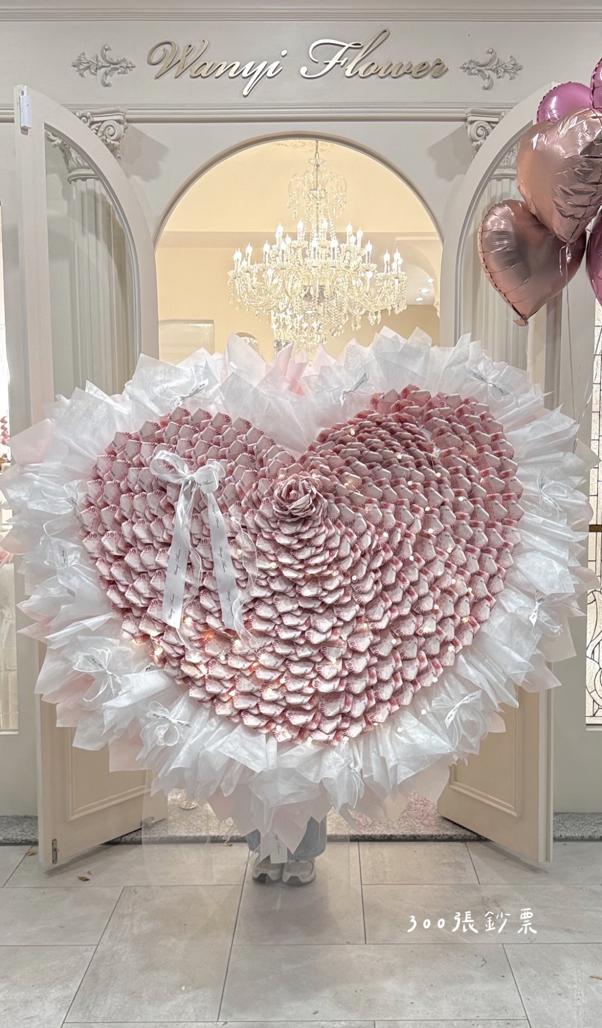 以精緻多層次包裝手法打造的華麗鈔票花束,