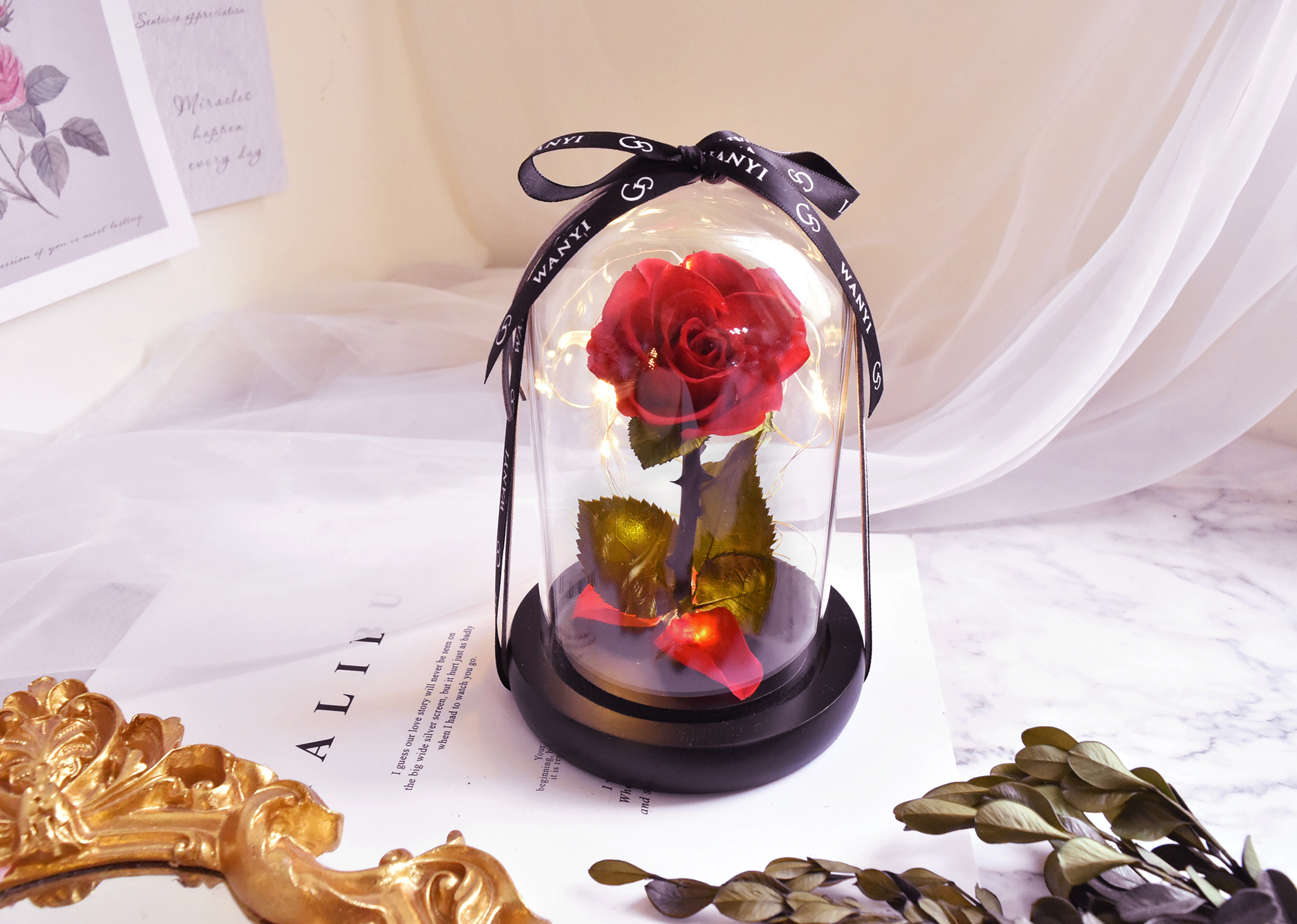 美女與野獸 永生玻璃罩玫瑰花
