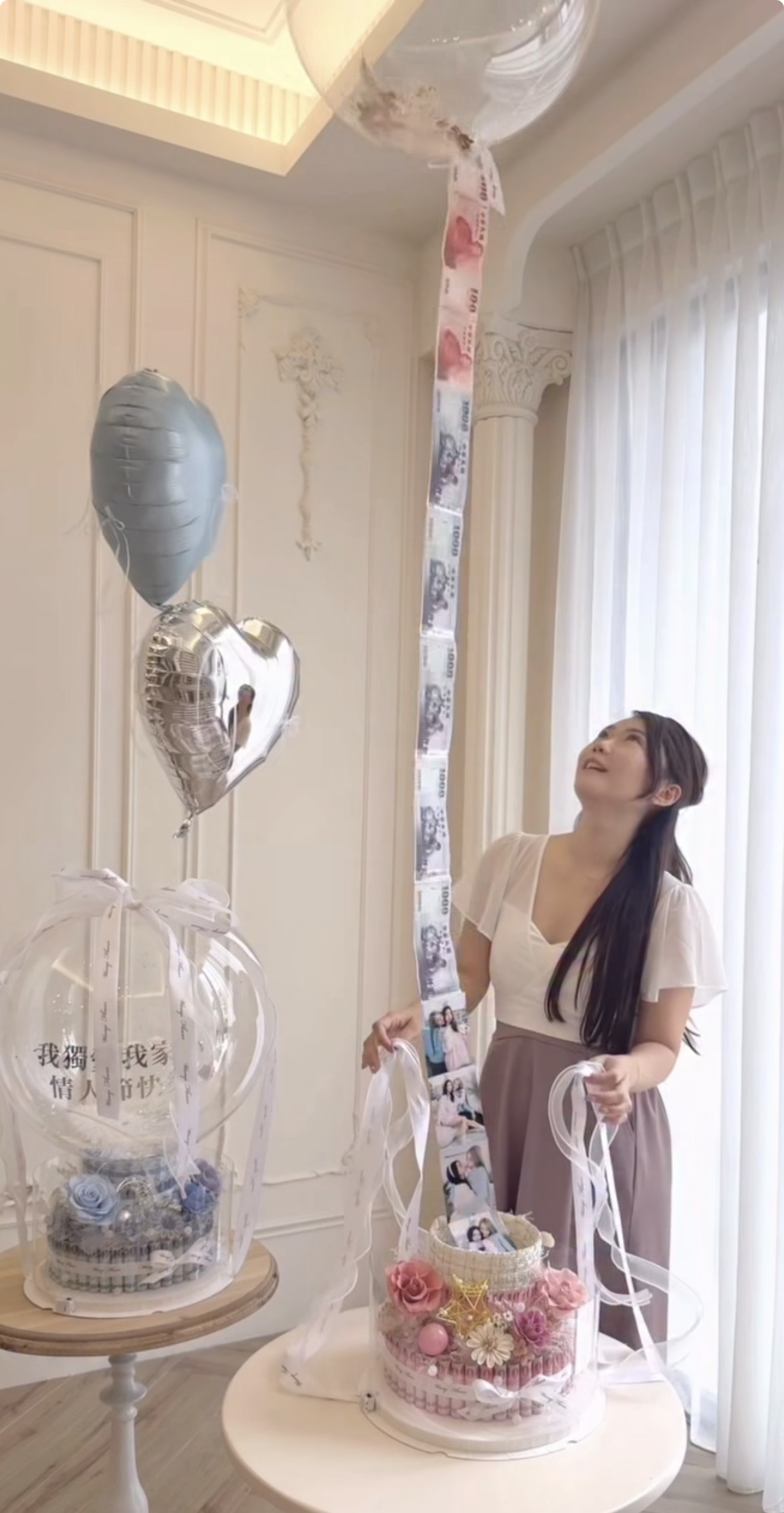 • 空飄氣球可放 10–15 張鈔票,可改照片或文字