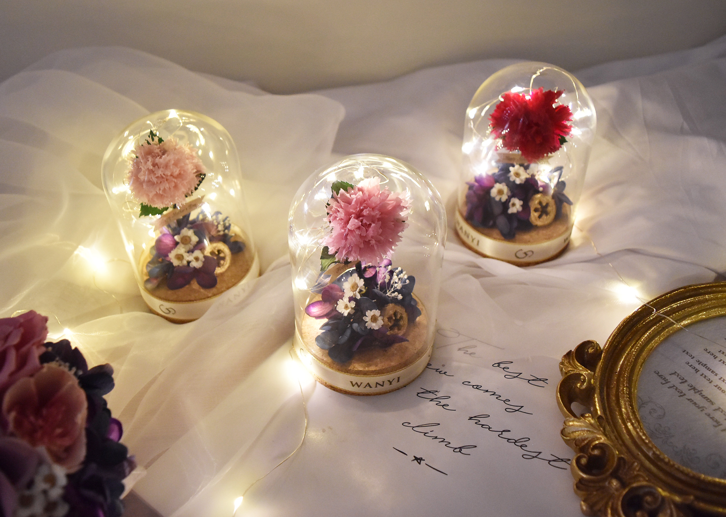 材質:玻璃罩、不凋康乃馨、不凋玫瑰