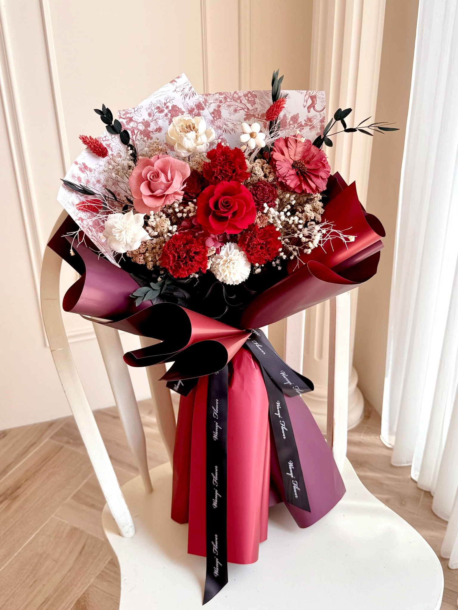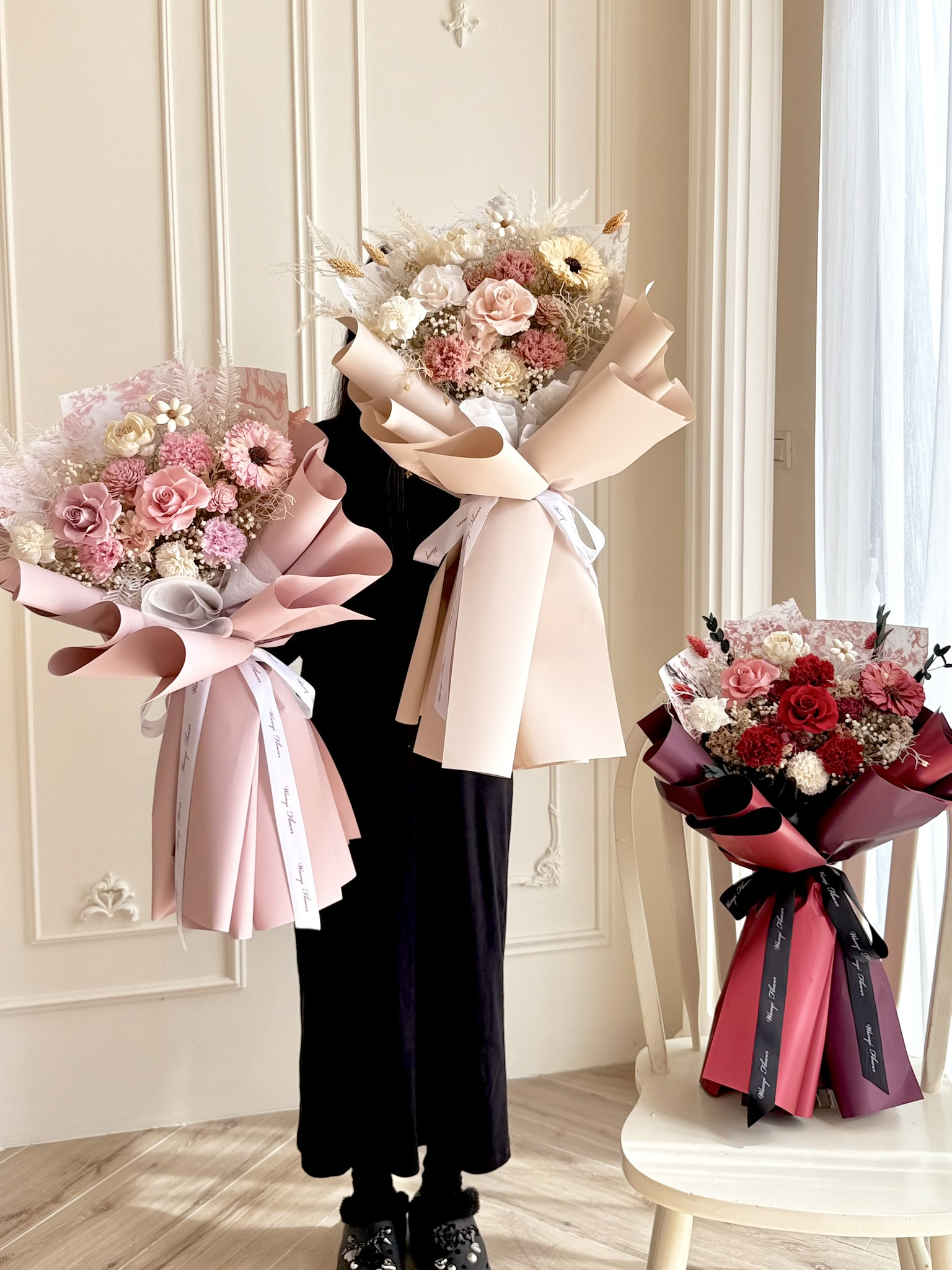 永生花・乾燥花(康乃馨、玫瑰、太陽菊等)