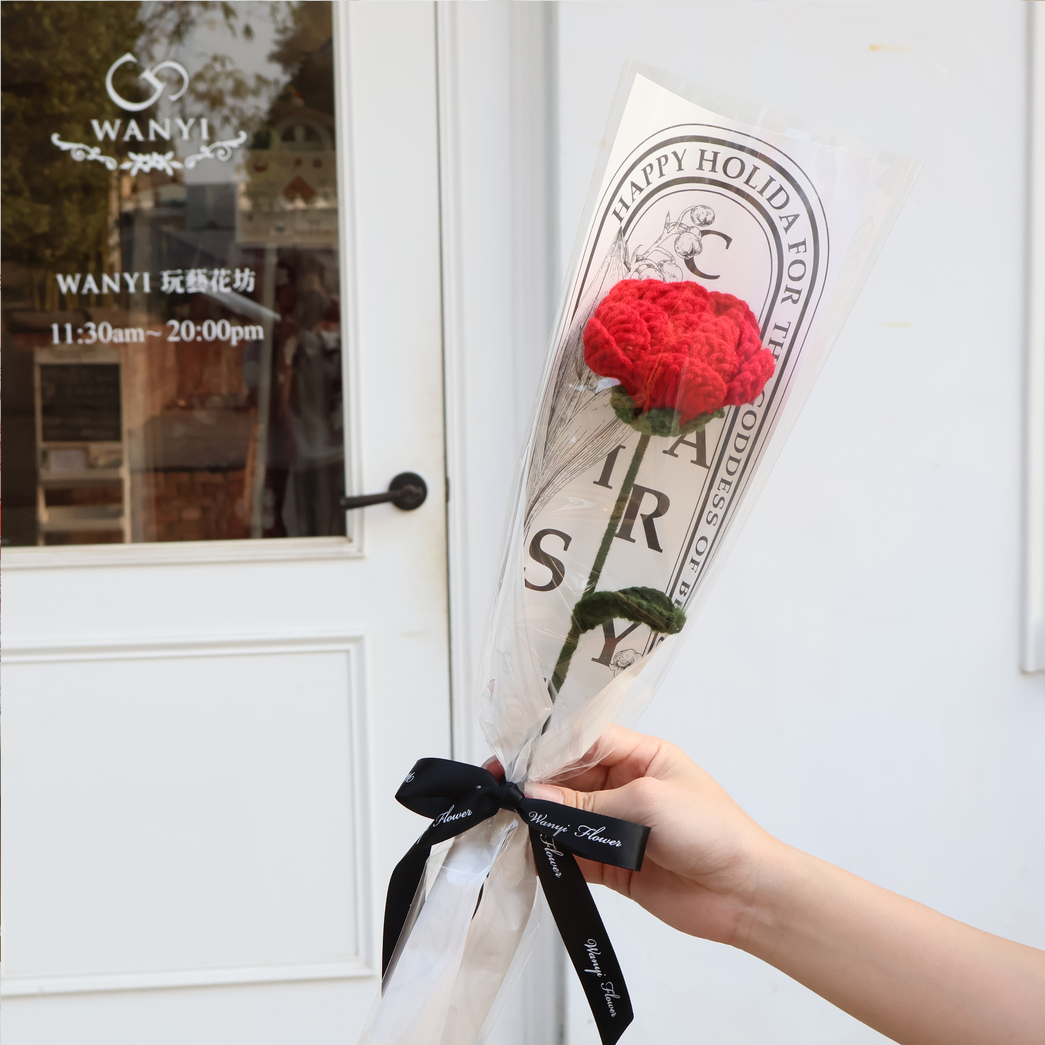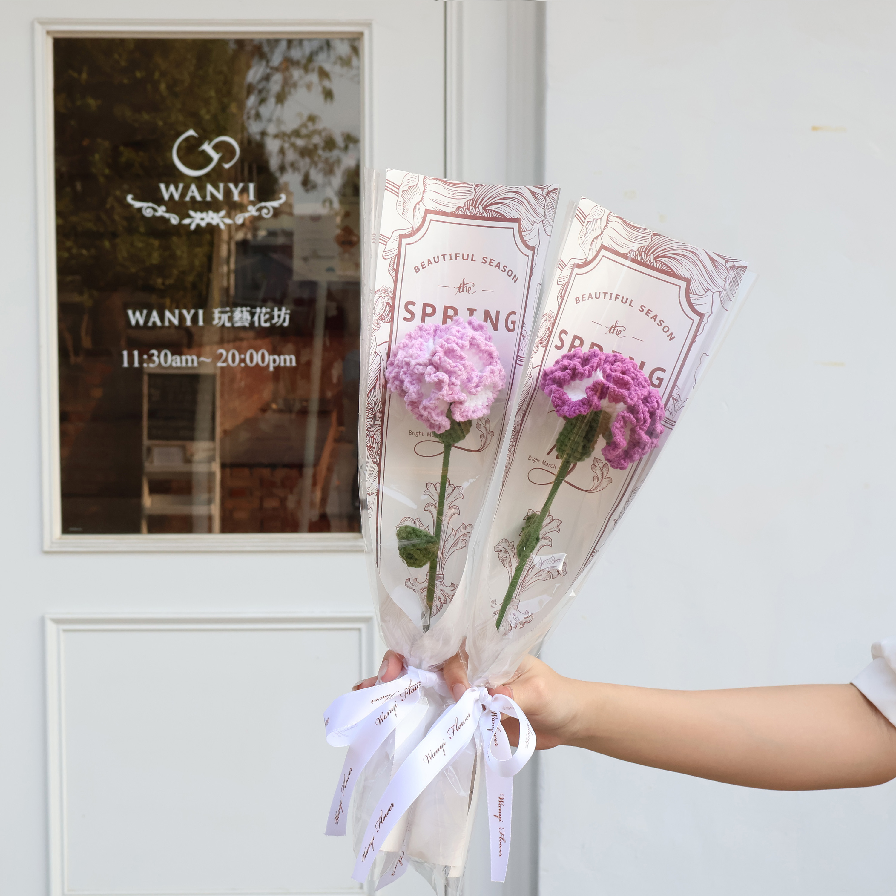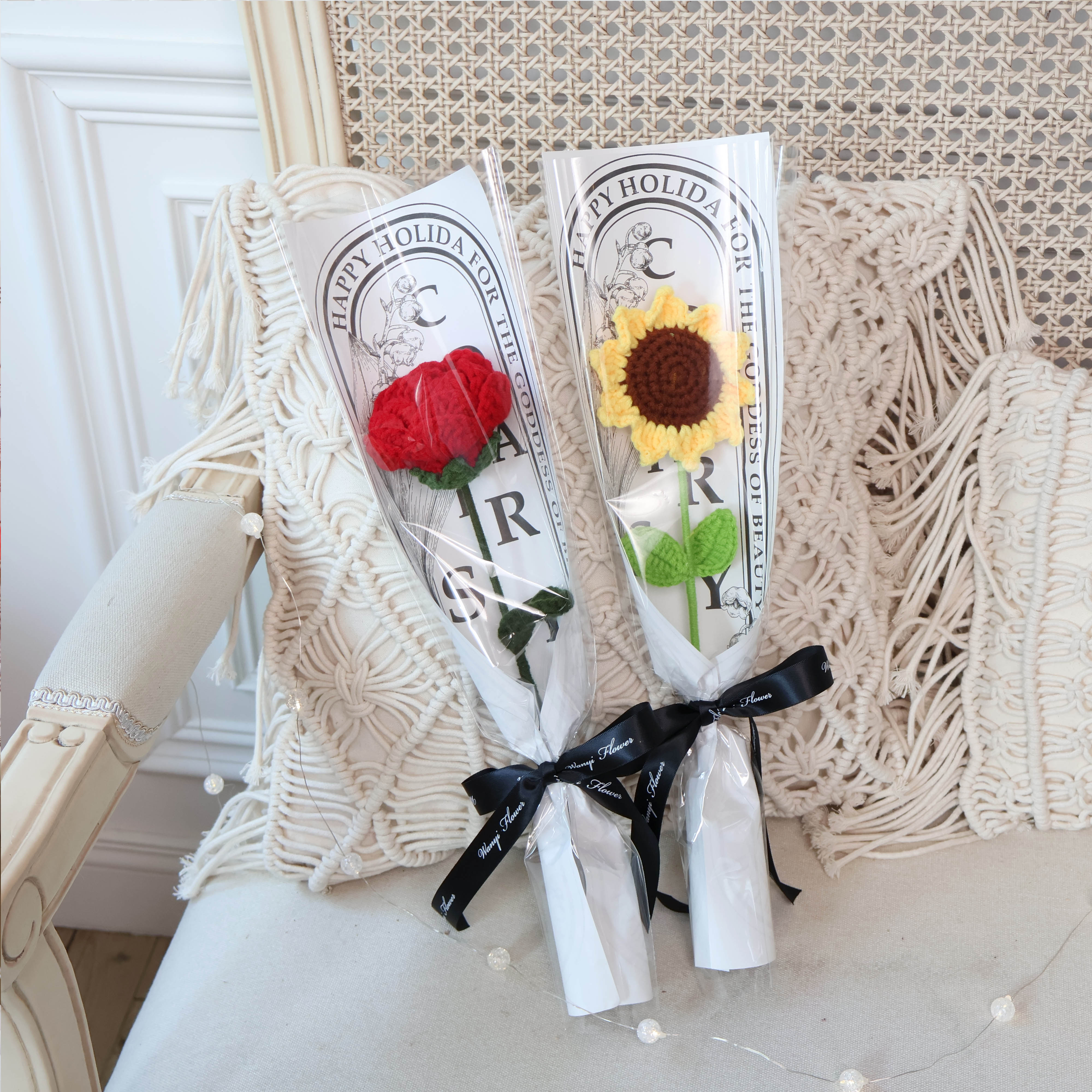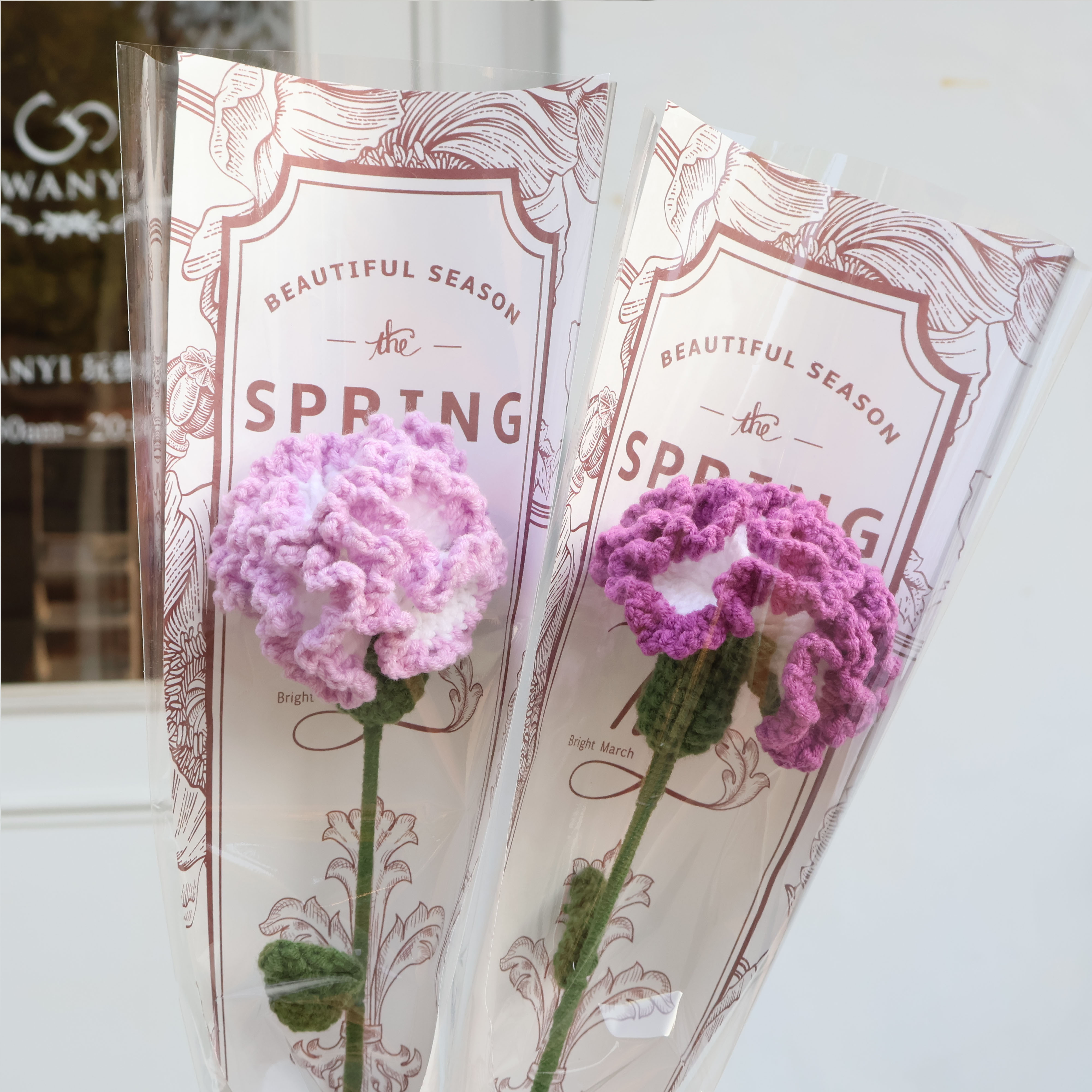 純手工編織毛線花 搭配質感網紅透明袋子,在陽光底下閃閃發光