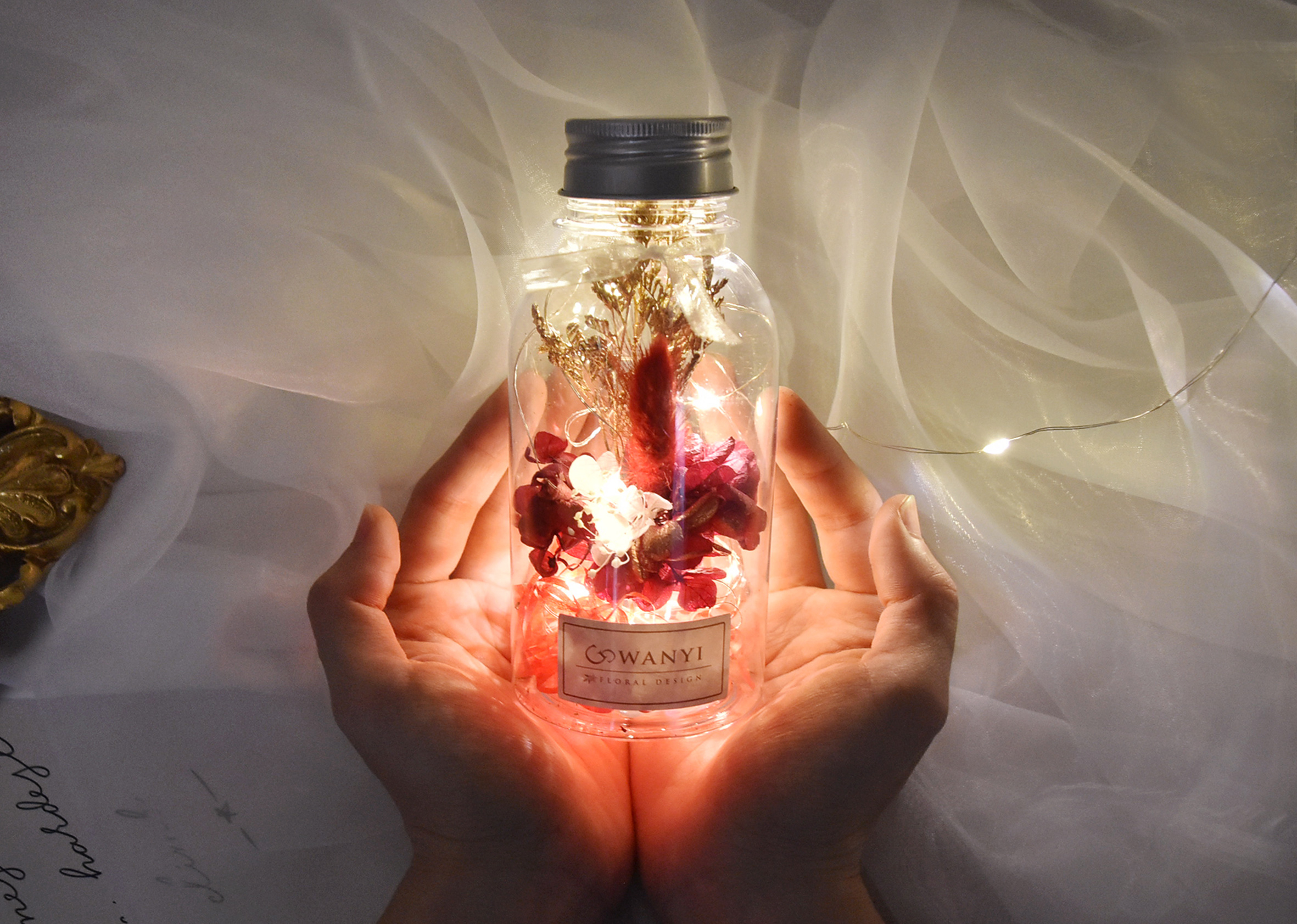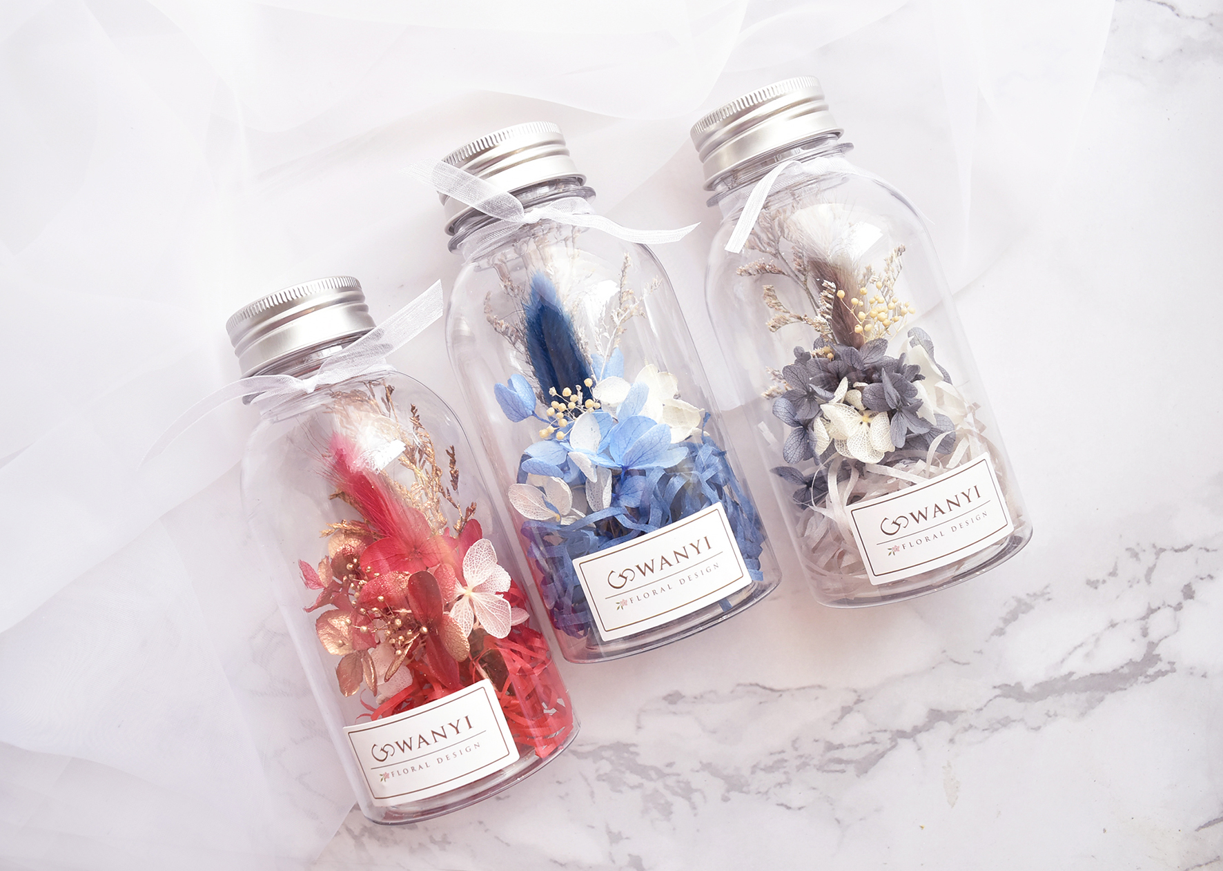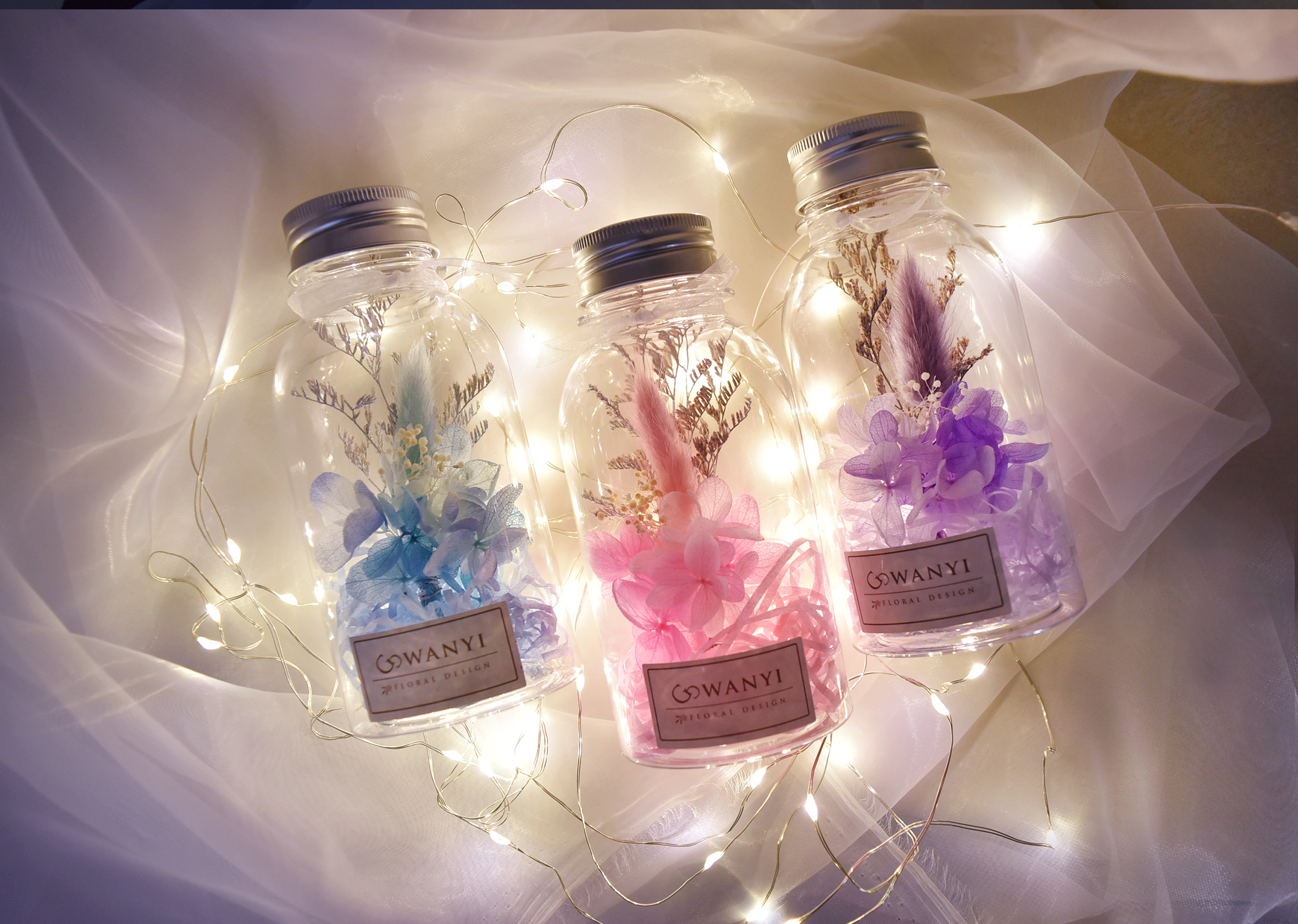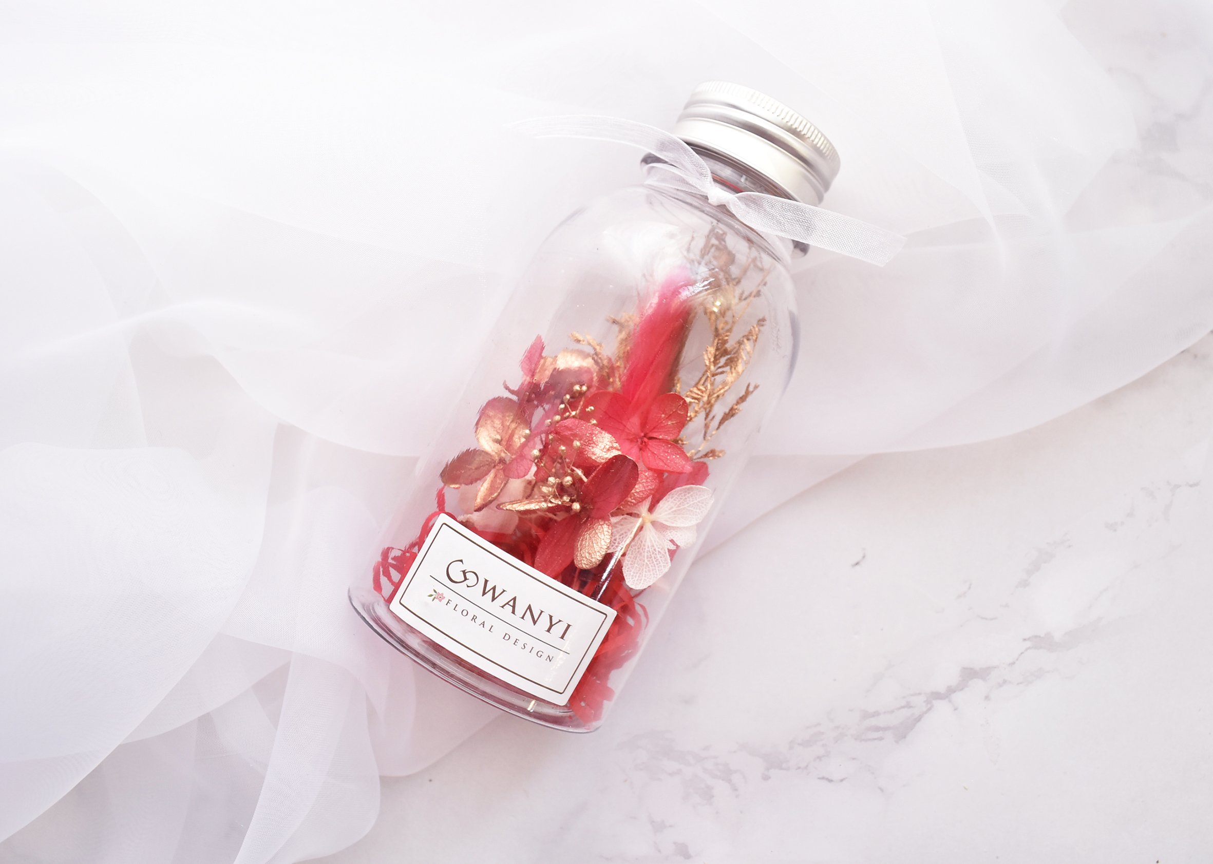 瓶子裡裝著滿滿的祝福,保護著美麗的花兒不怕壞!