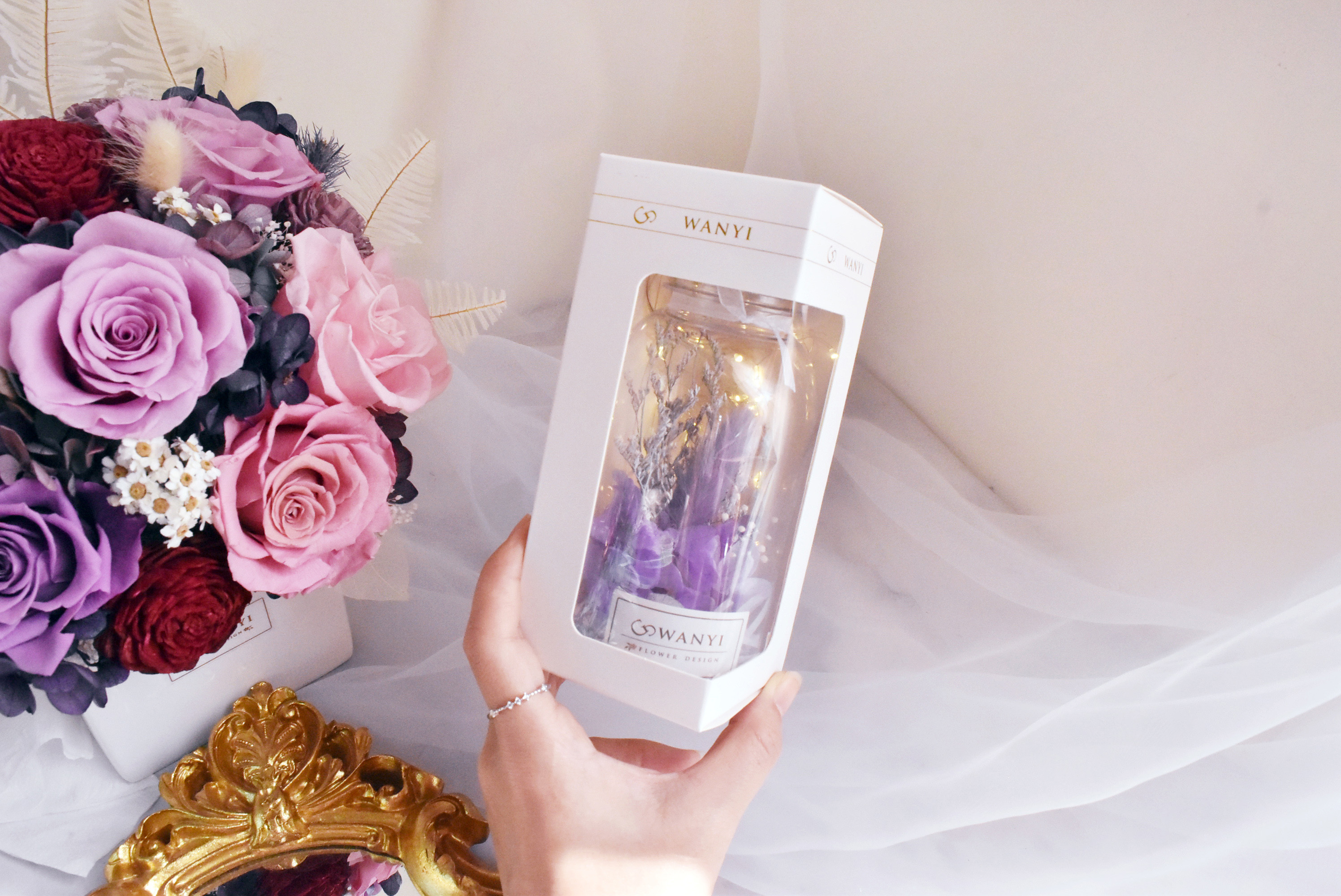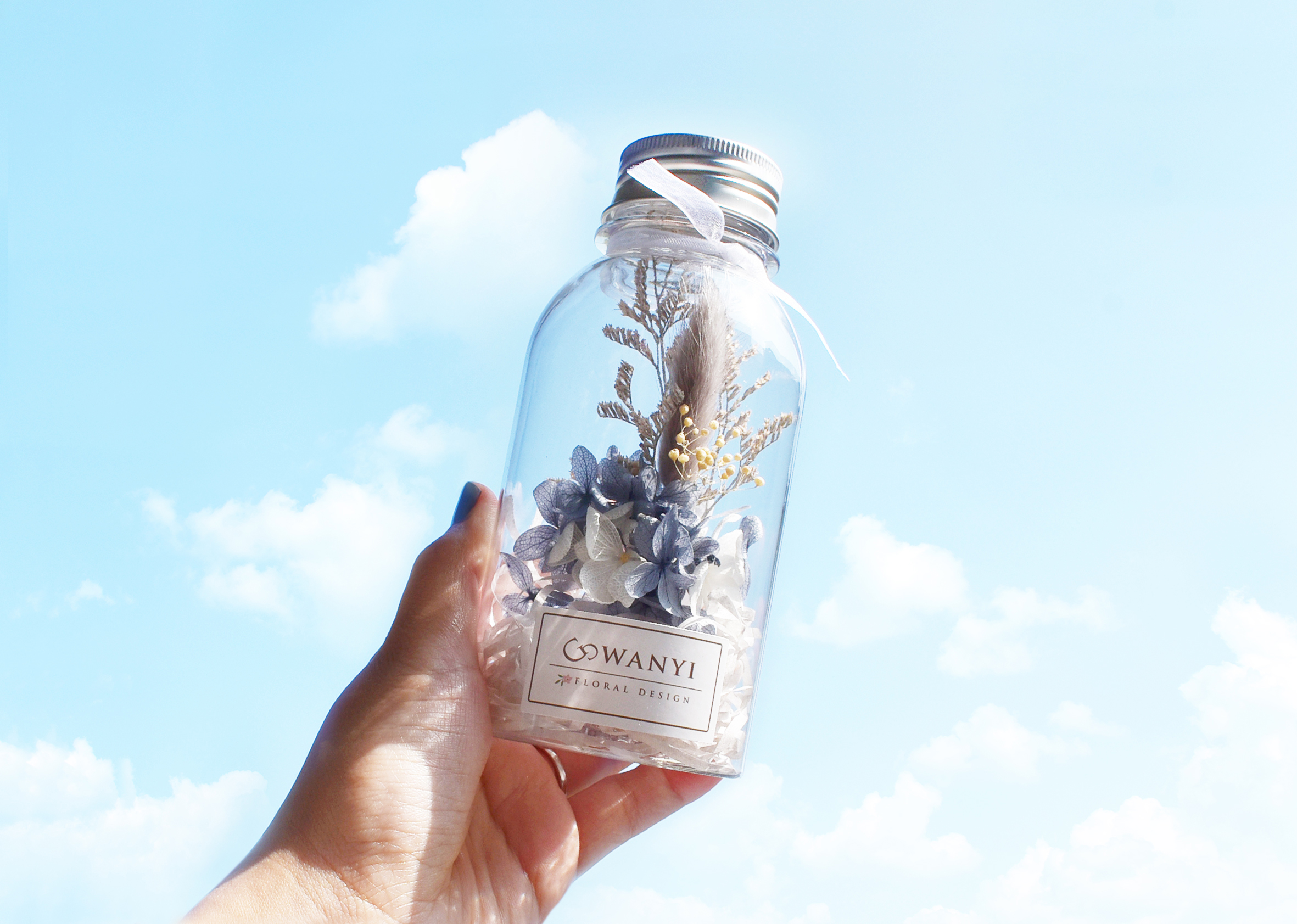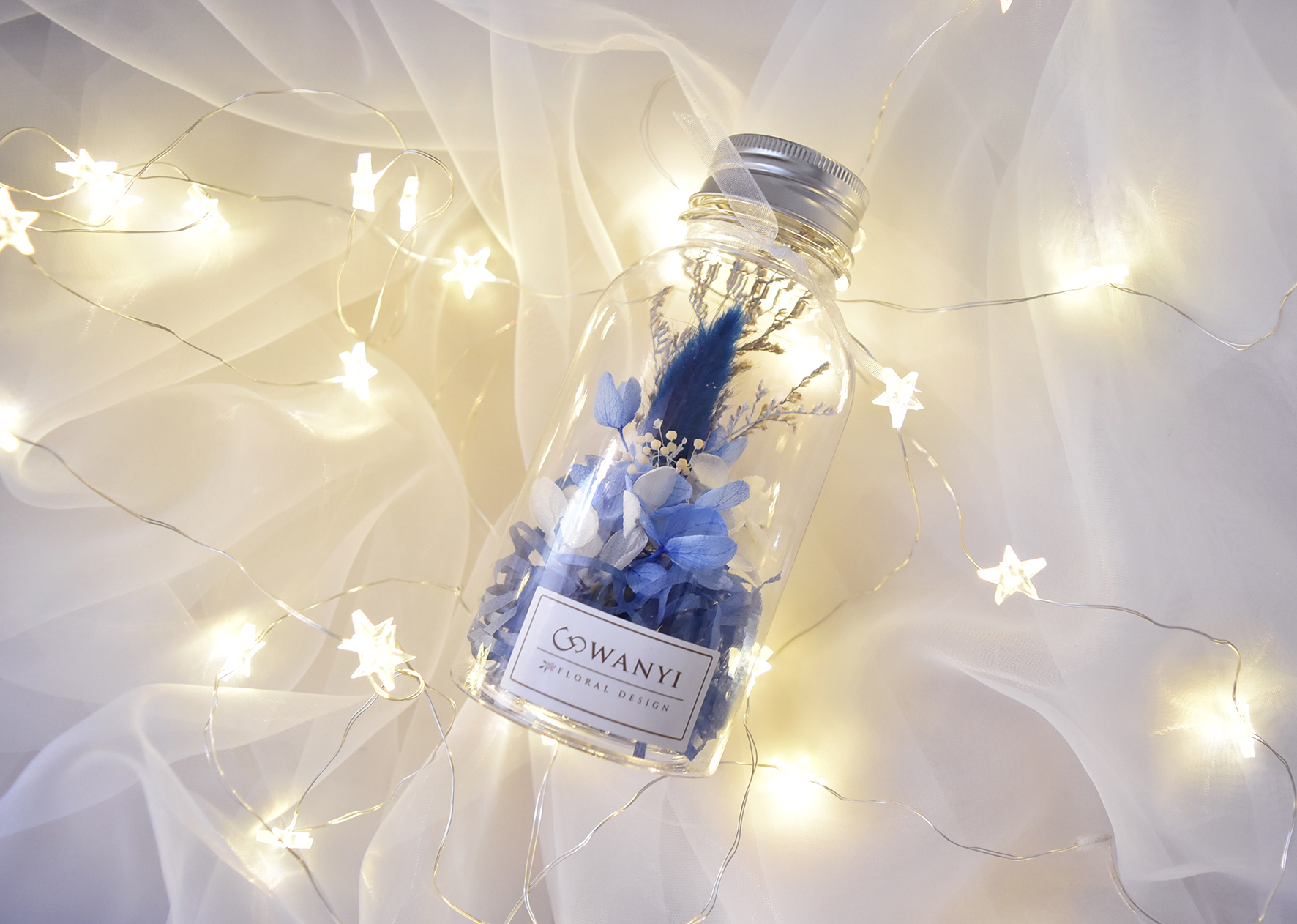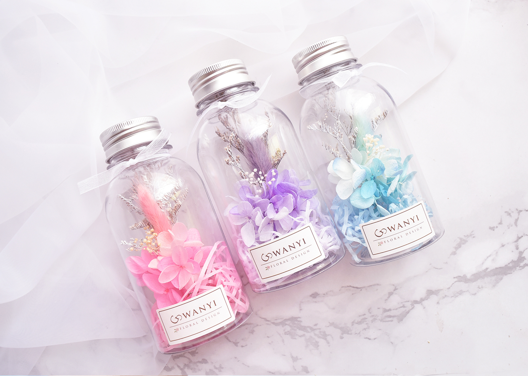 瓶子裡裝著滿滿的祝福,保護著美麗的花兒不怕壞!