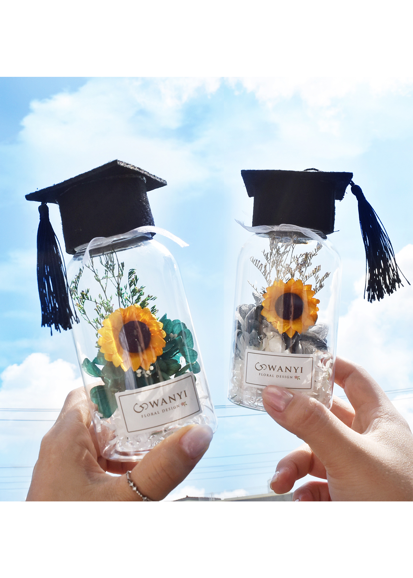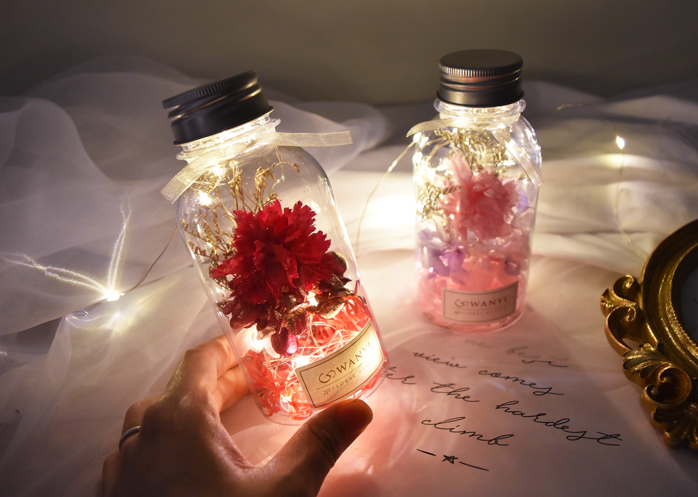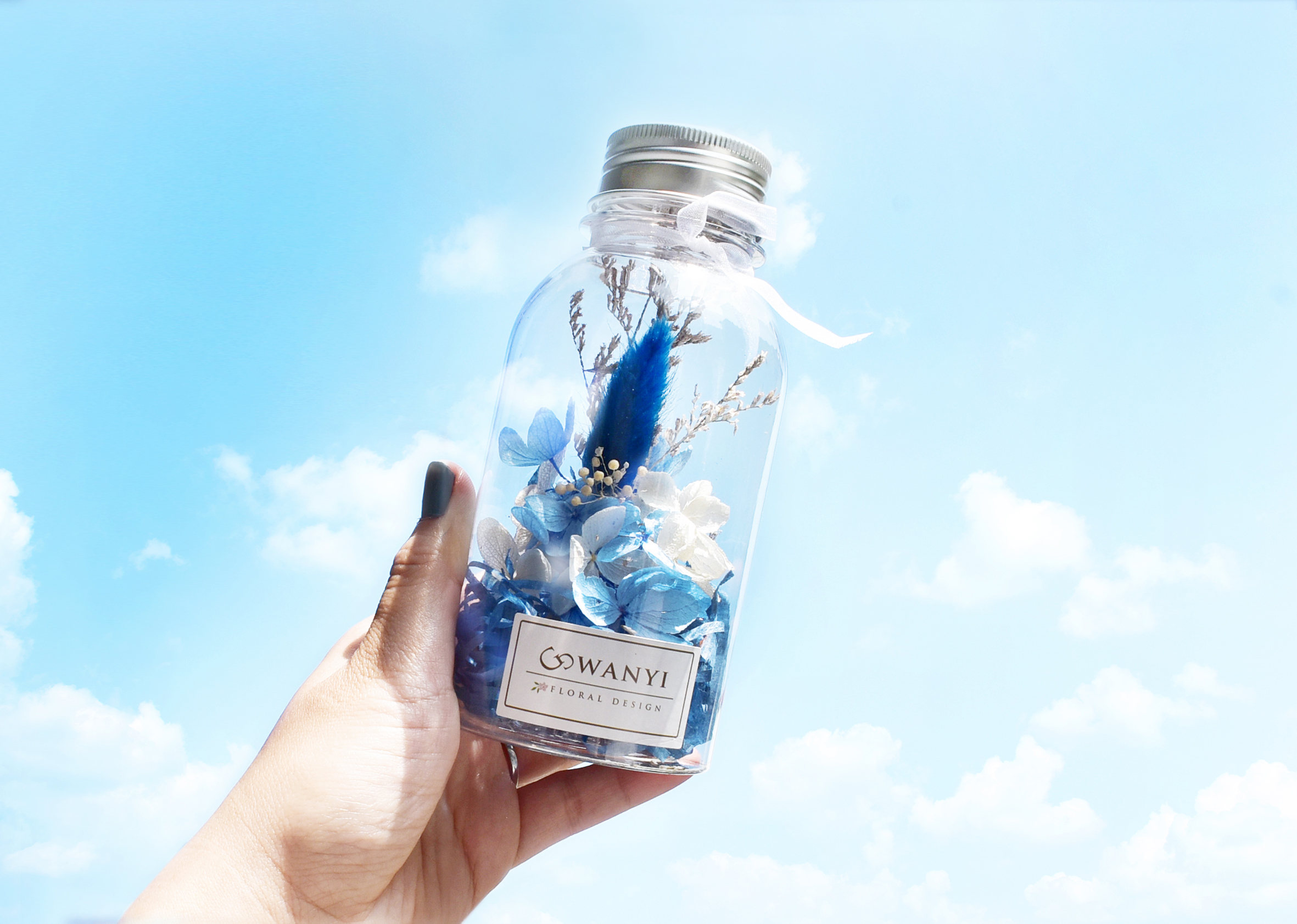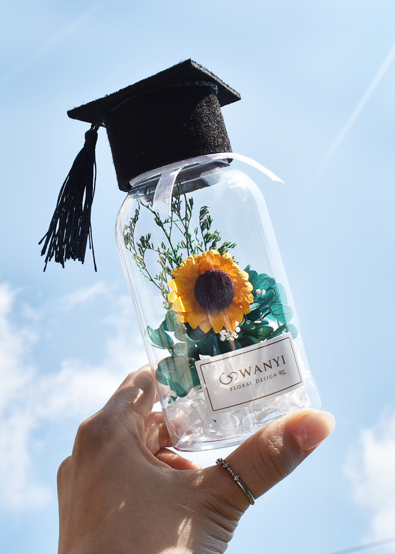 瓶子裡裝著滿滿的祝福,保護著美麗的花兒不怕壞!