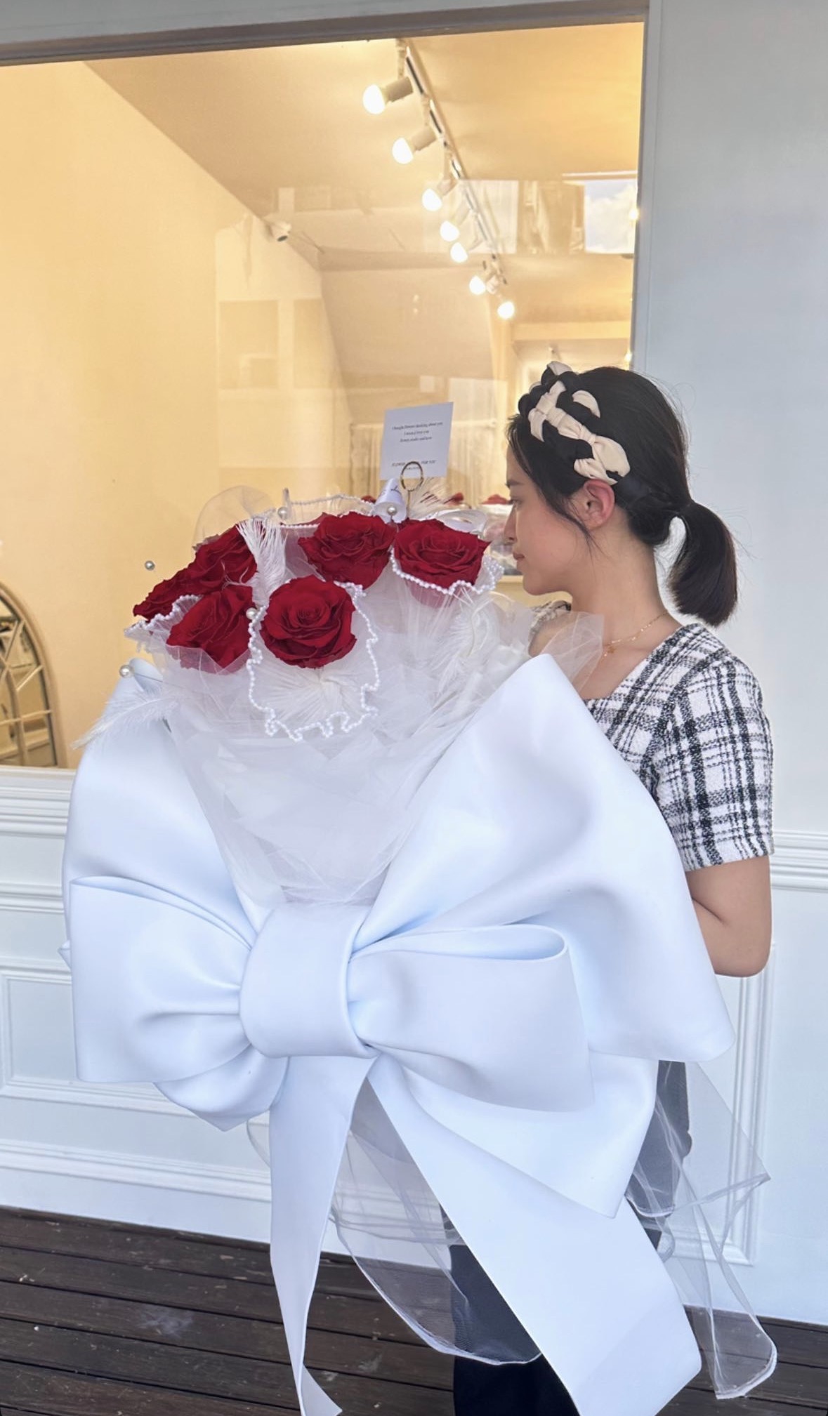 以超大立體蝴蝶結搭配厄瓜多永生玫瑰打造的網紅必拍款花束,不論是生日、求婚、紀念日或驚喜告白,都能讓人一眼驚艷。
