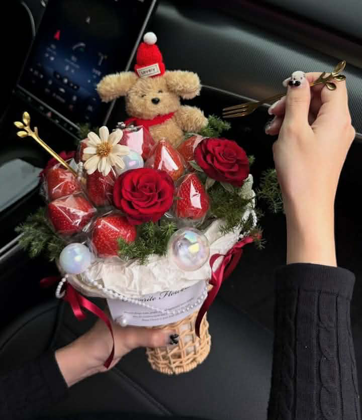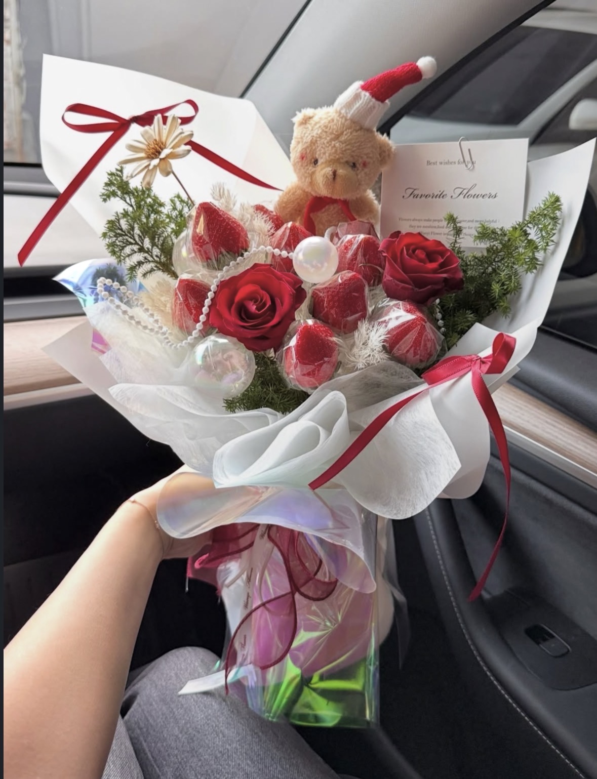 •草莓花束收到當天沒吃完要冰起來 隔天一定要吃完唷!