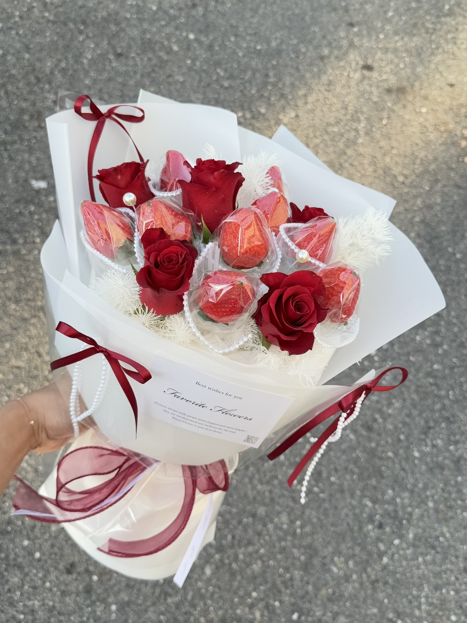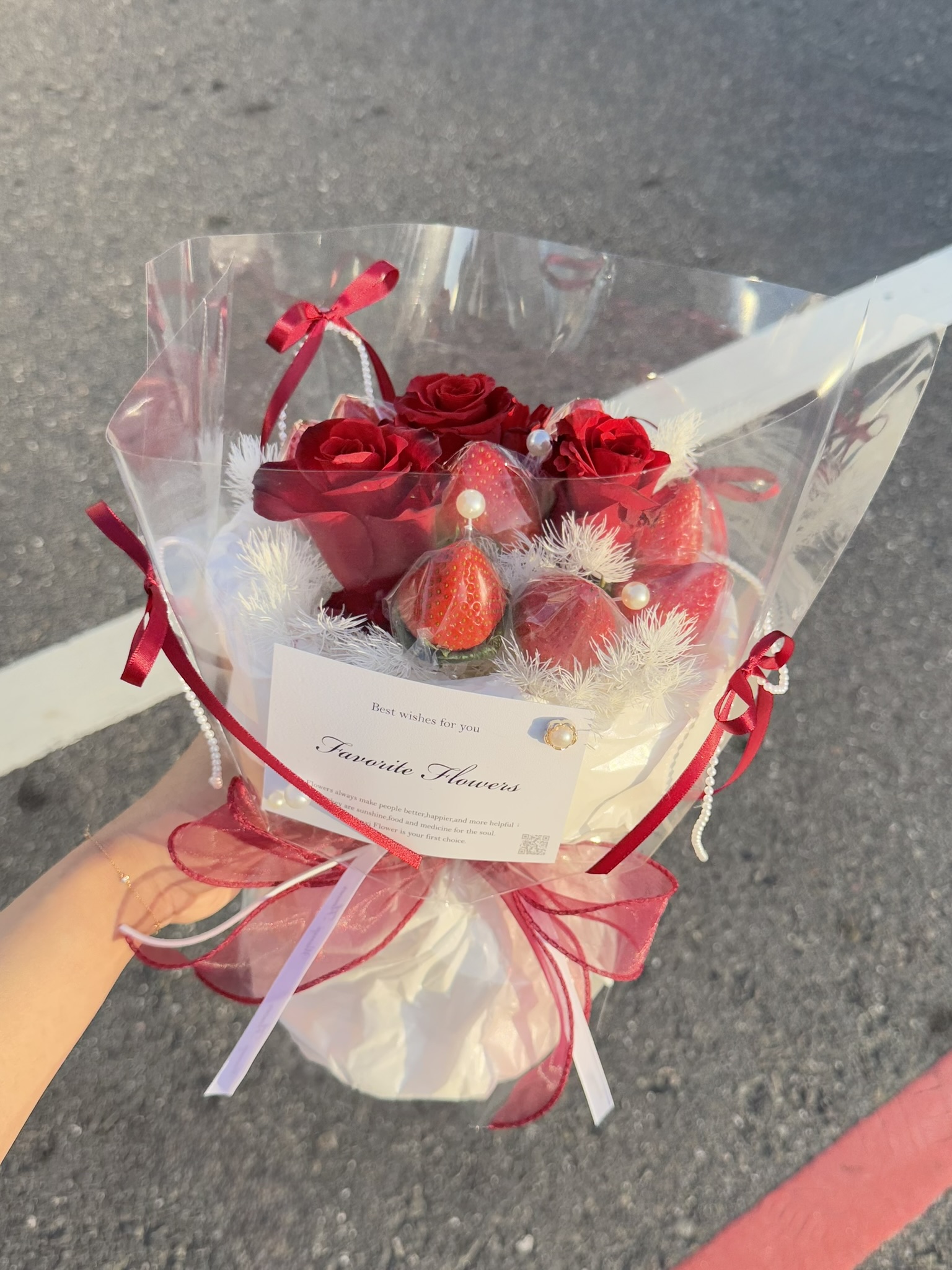 🍓蝴蝶結仙女玫瑰草莓花束