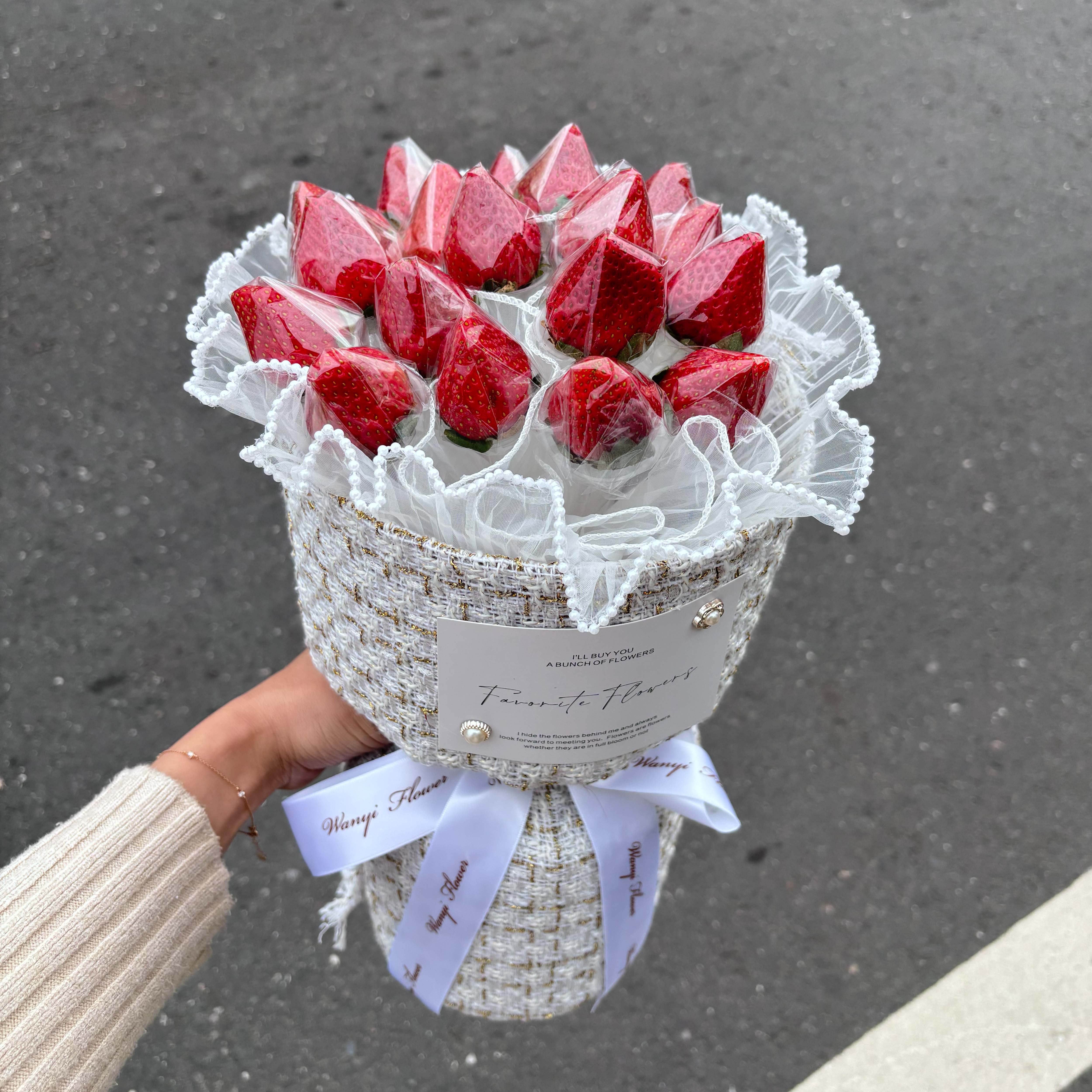 •草莓花束收到當天沒吃完要冰起來 隔天一定要吃完唷!