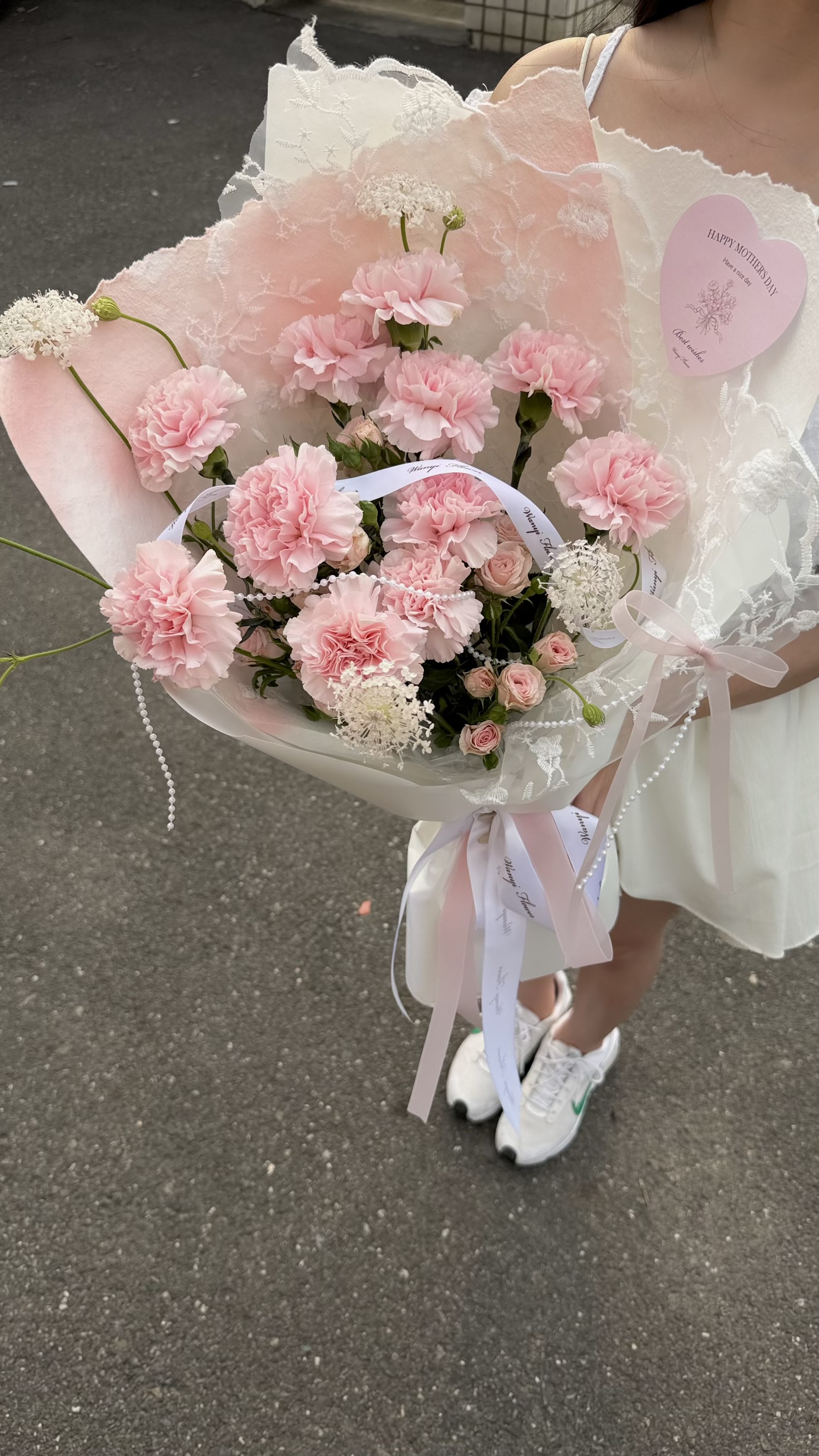 用一點蕾絲與康乃馨的浪漫回應媽媽一輩子的溫柔