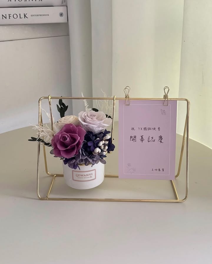 以永生花為主花材,搭配細緻乾燥花、進口葉材與客製色系設計,