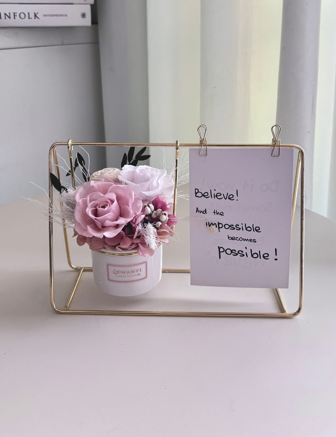 *WANYI採用當季新鮮花材乾製而成,如遇到花材缺貨,會自行搭配最適合的花材替代,如無法接受請勿下單。