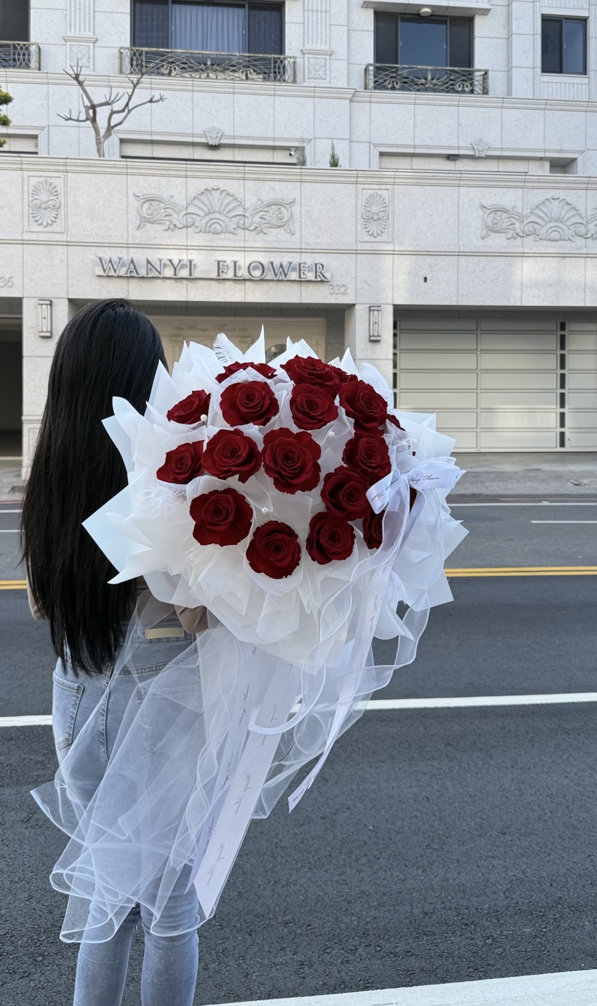 玫瑰花朵數可自由加大,從 7 朵到 99 朵都有提供,效果拍照非常顯眼,氣勢又不失質感。