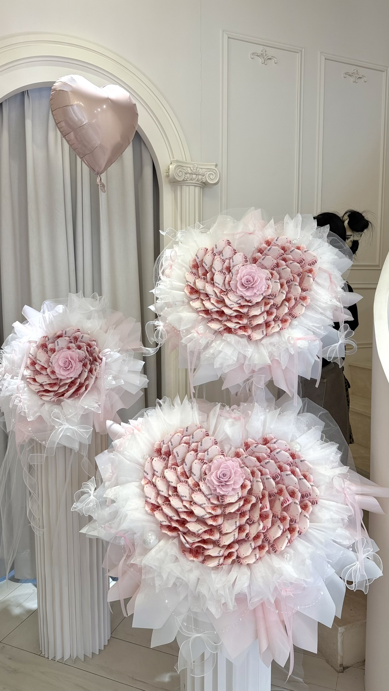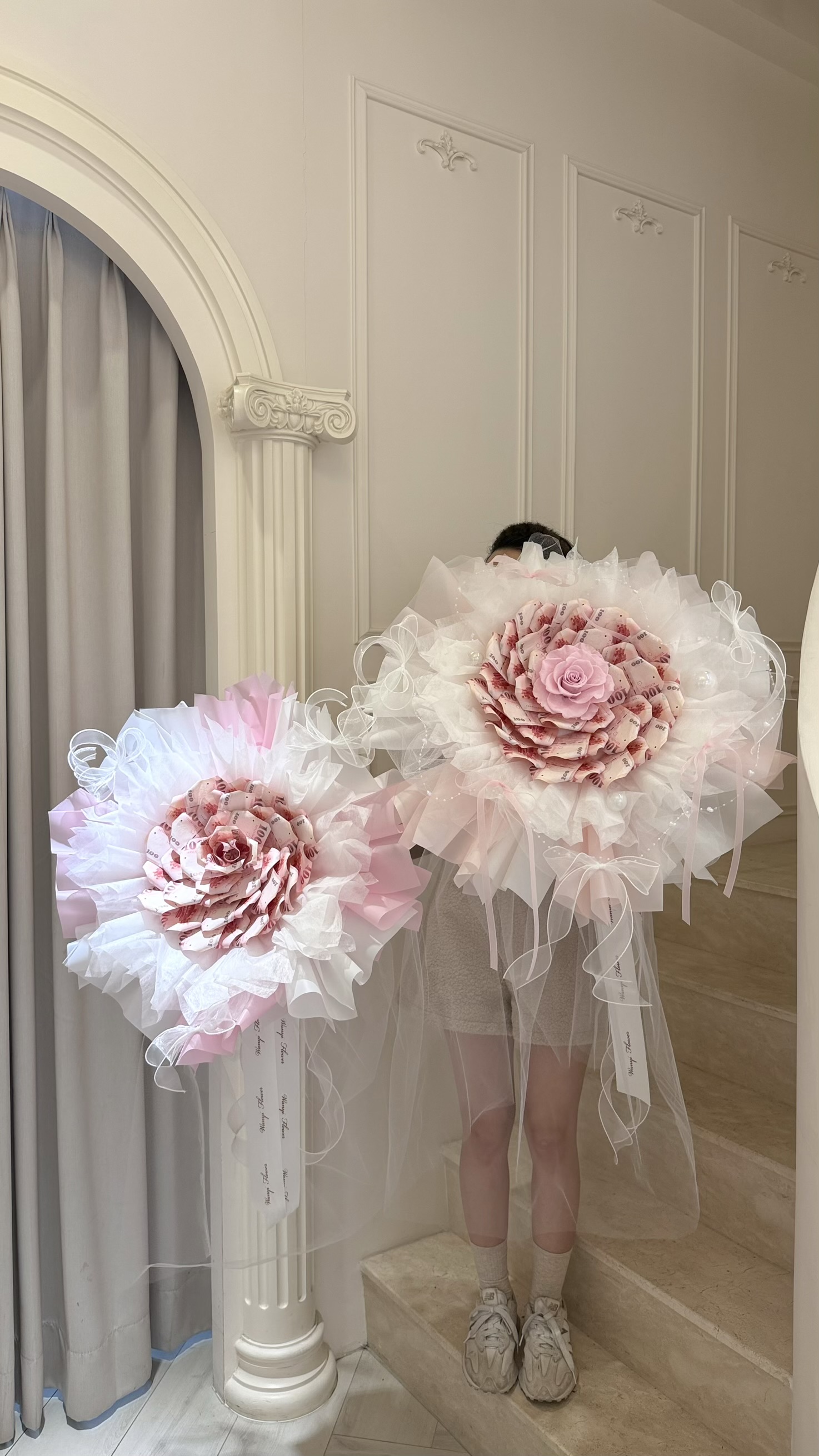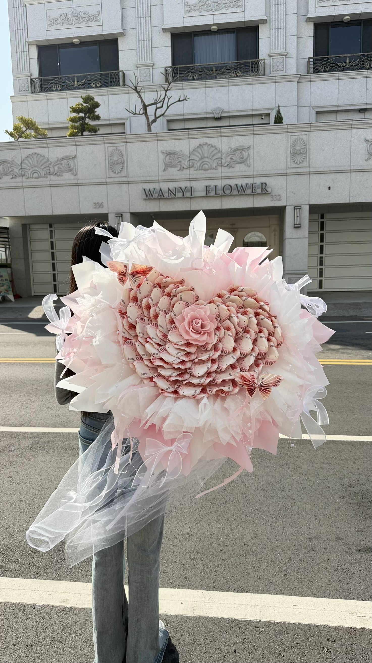 以精緻多層次包裝手法打造的華麗鈔票花束,