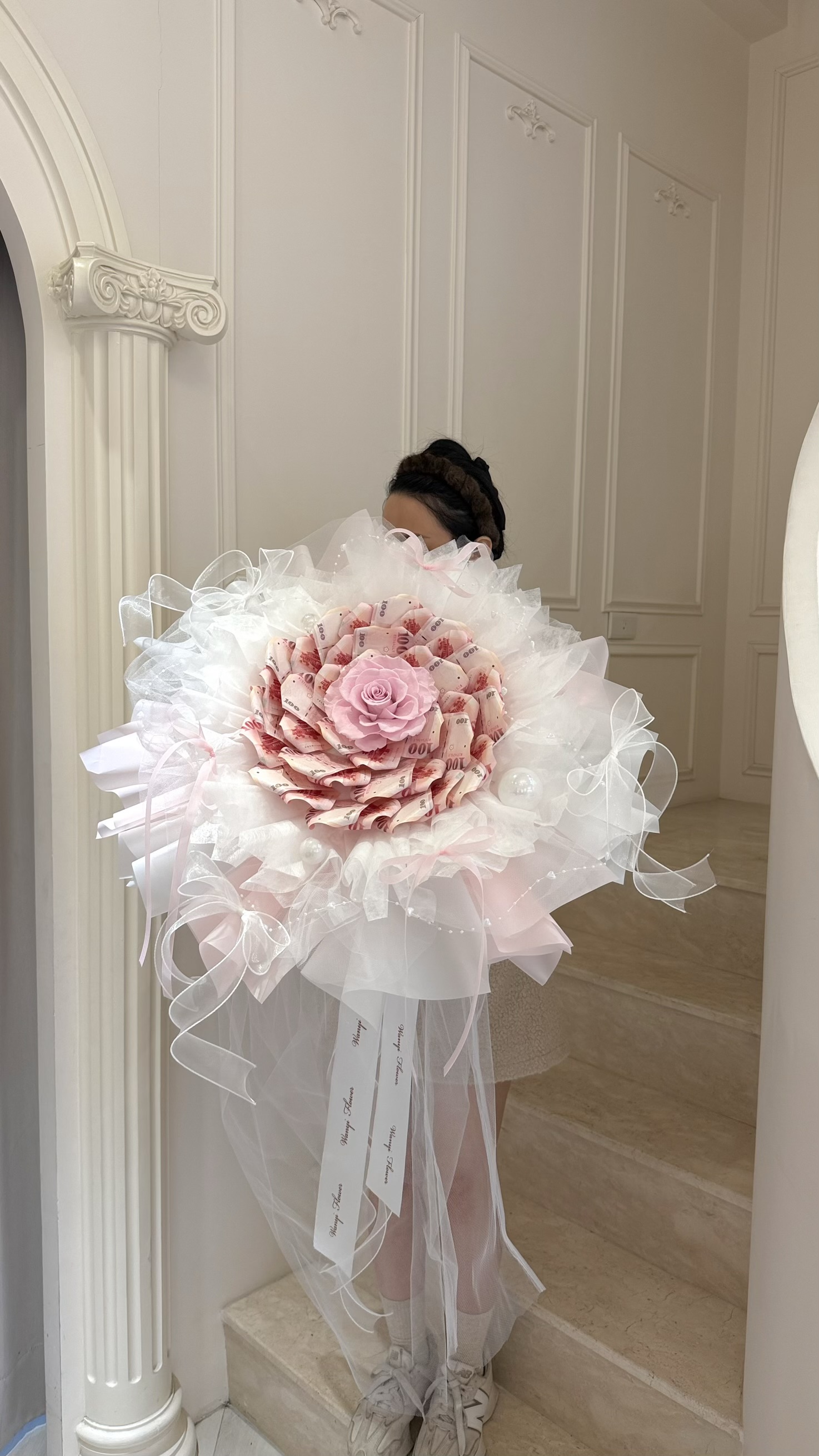 一朵玫瑰大型多層次包裝花束|高質感鈔票花束